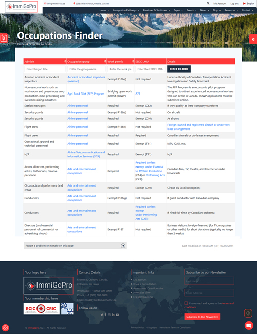 The Occupation Finder table below offers details on the different types of occupations available in Canada. It also specifies the type of work permit required for each occupation and whether an LMIA (Labour Market Impact Assessment) is necessary.